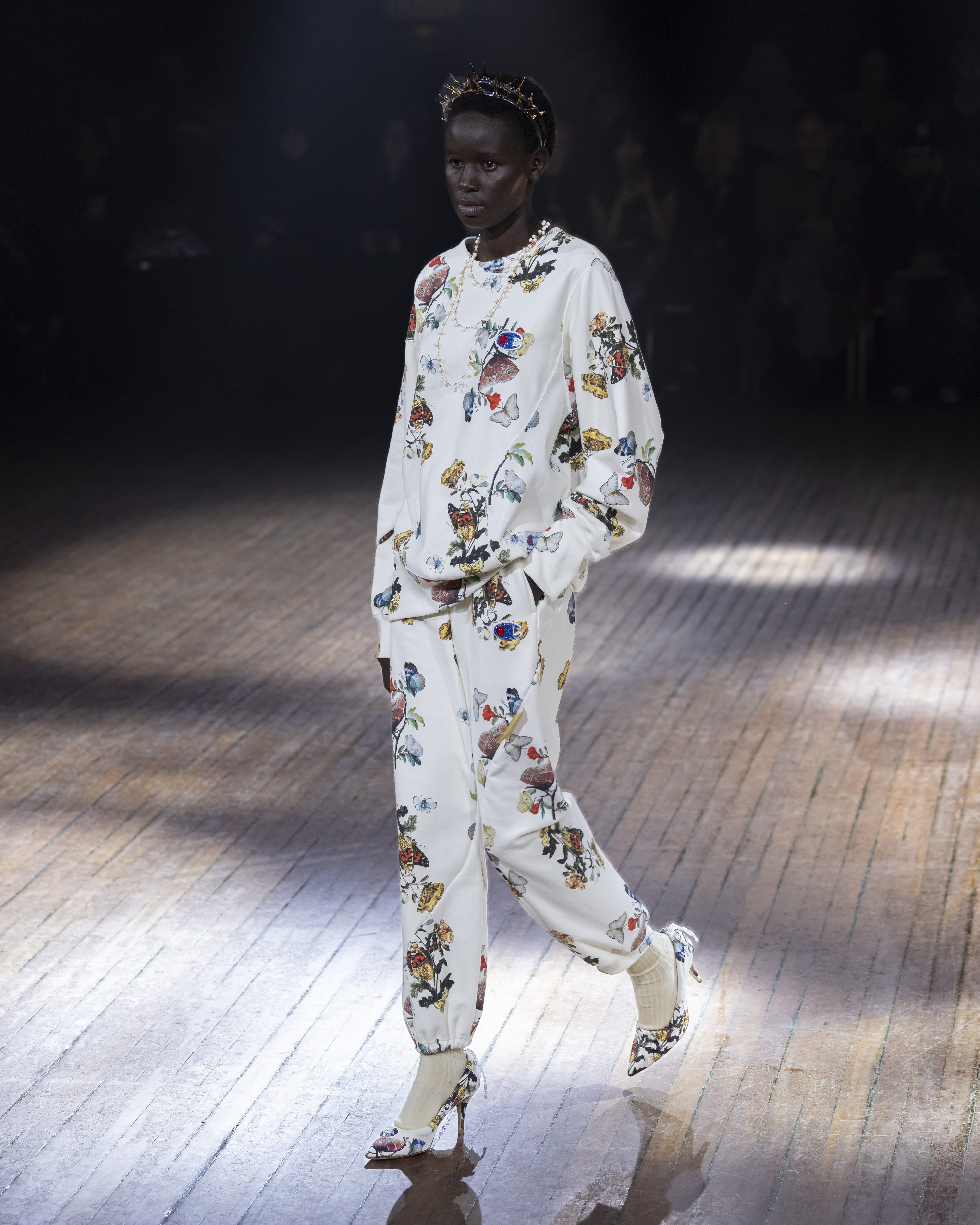 パリで行われたUNDERCOVER 2025年秋冬ウィメンズコレクションのショーに登場した、パーカやスウェットパンツなどのアイテム。前回のコラボレーションと同じくChampionを象徴する「リバースウィーブ」を採用し、生地の厚みを10ozから11.5ozにアップデートしました。