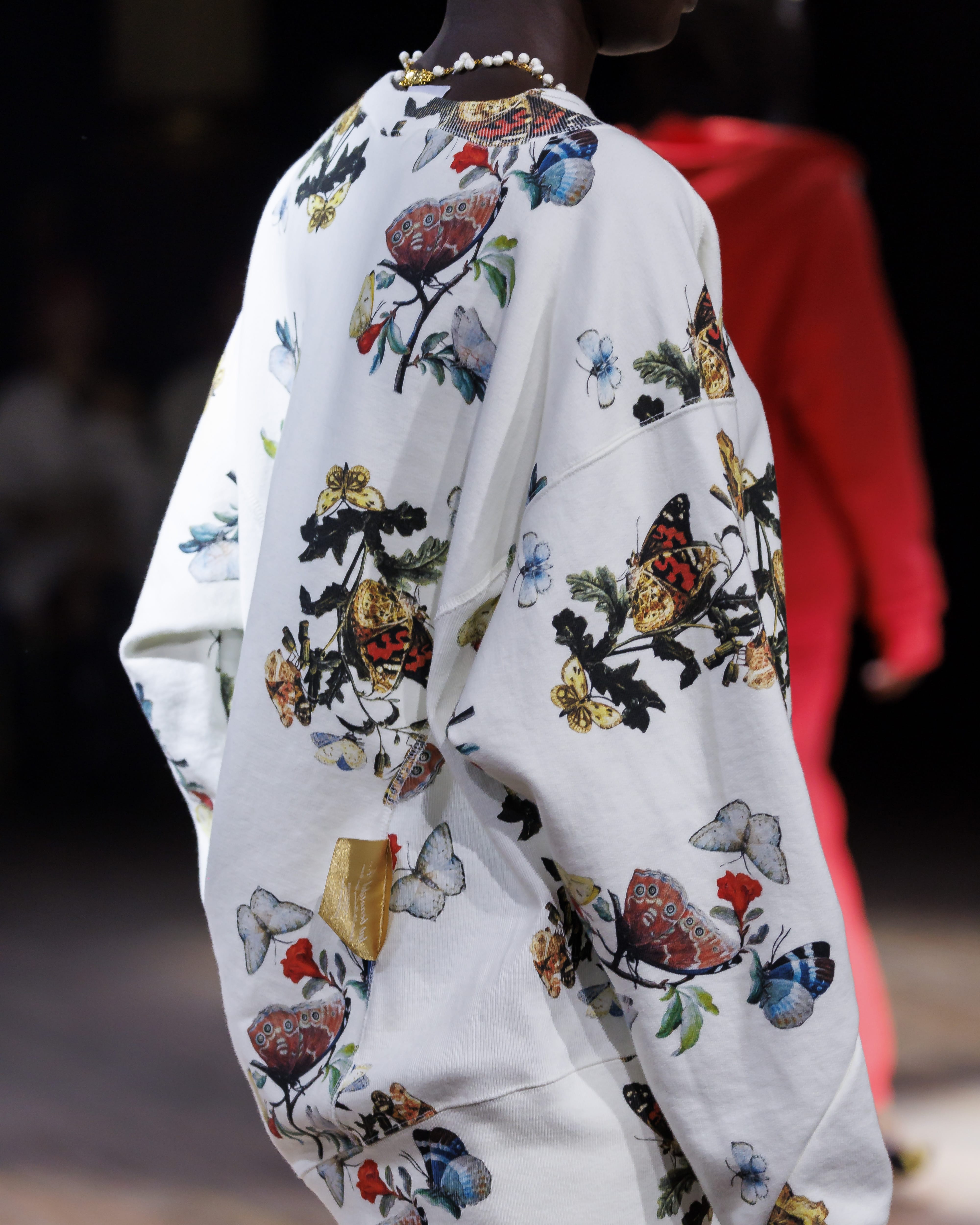 外に飛び出たタグや、歪んだ縫い目がユニークなデザインは、「but beautiful 4…」と題された同コレクションのコンセプトに合わせたもの。カラーは、前回のメンズコレクションよりもポップな OATMEAL、RED、YELLOW、BORDEAUX、NAVY、BLACK の6色展開。UNDERCOVERらしい総柄もラインナップし、秋冬の着こなしのアクセントにもぴったりです。