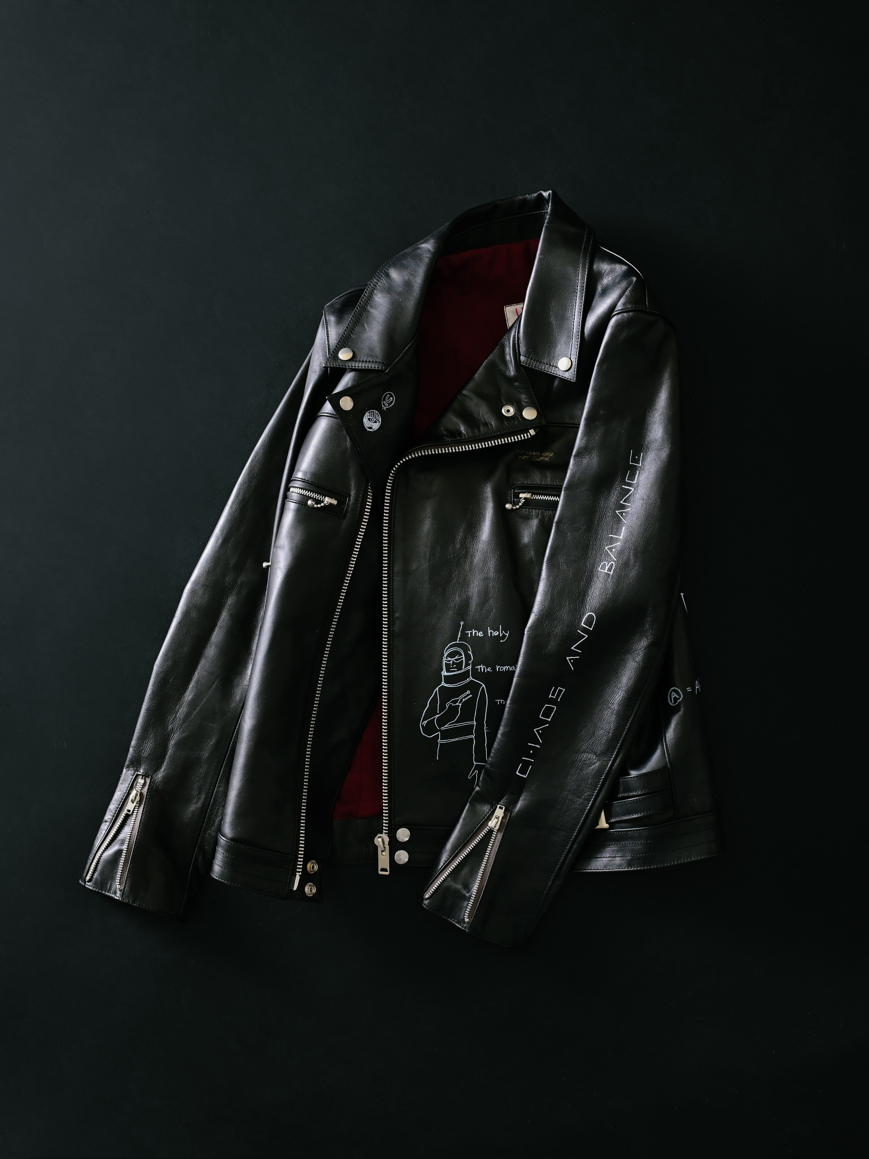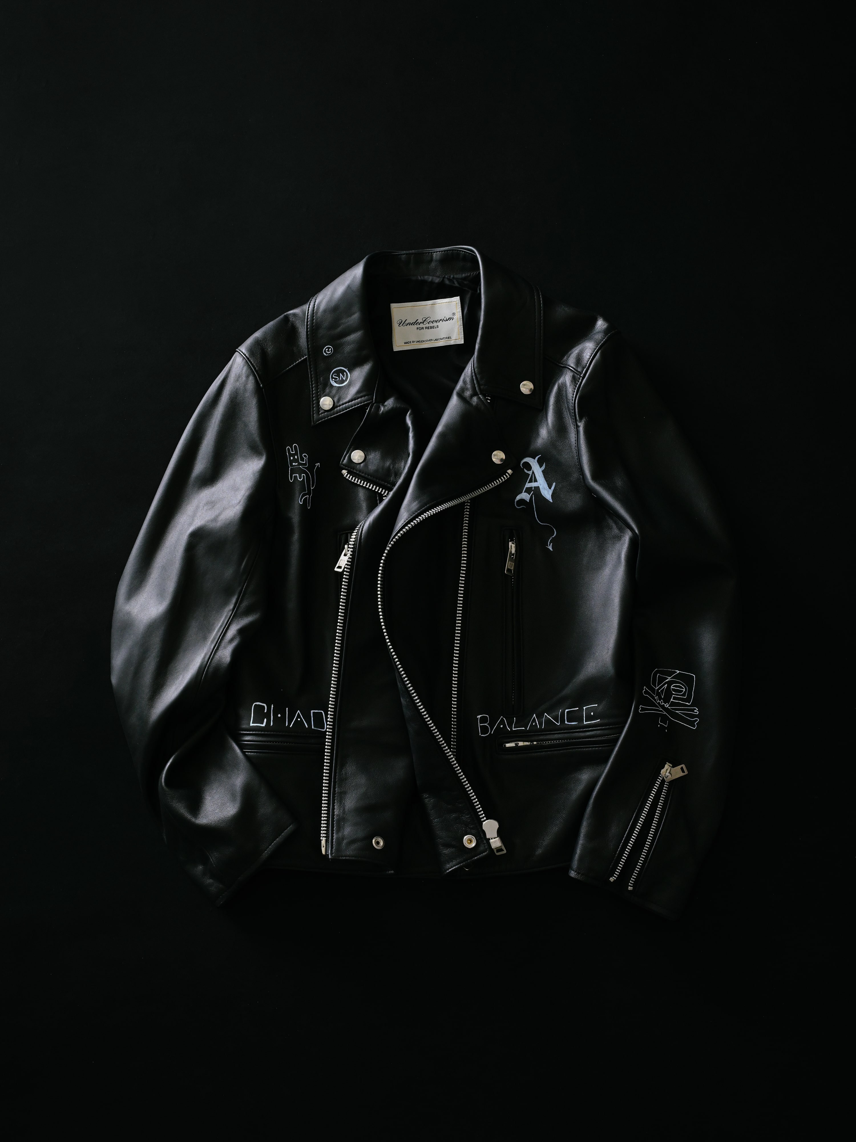 オープンを記念し、高橋盾の手描きデザインを施した レザージャケット4型 をはじめ、カスタムバッグ、そして Anarchy x Churchチェア特別仕様のチェアなど、一点物のスペシャルアイテムをご用意しました。