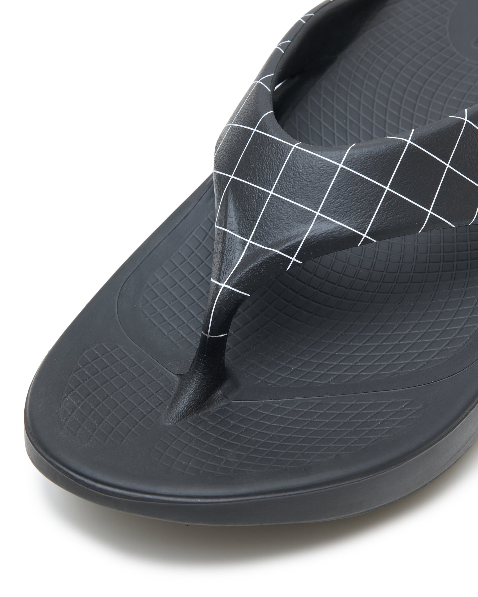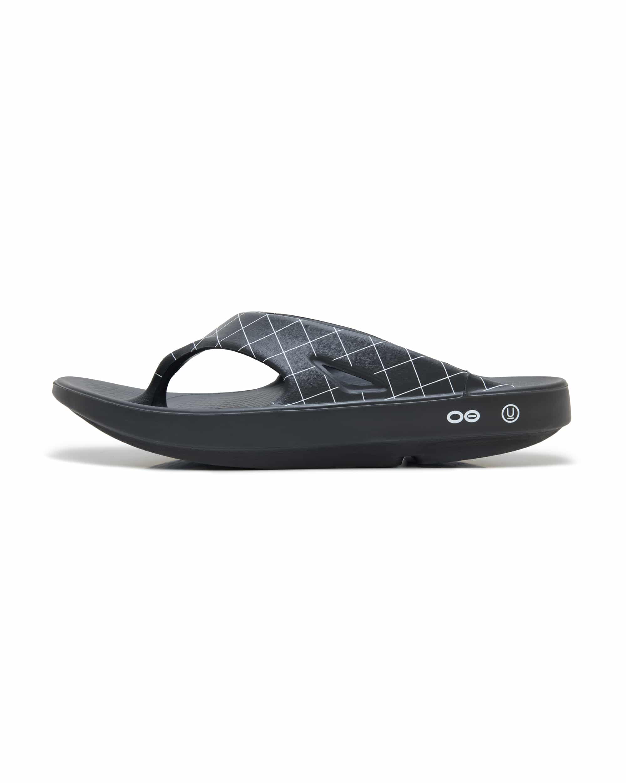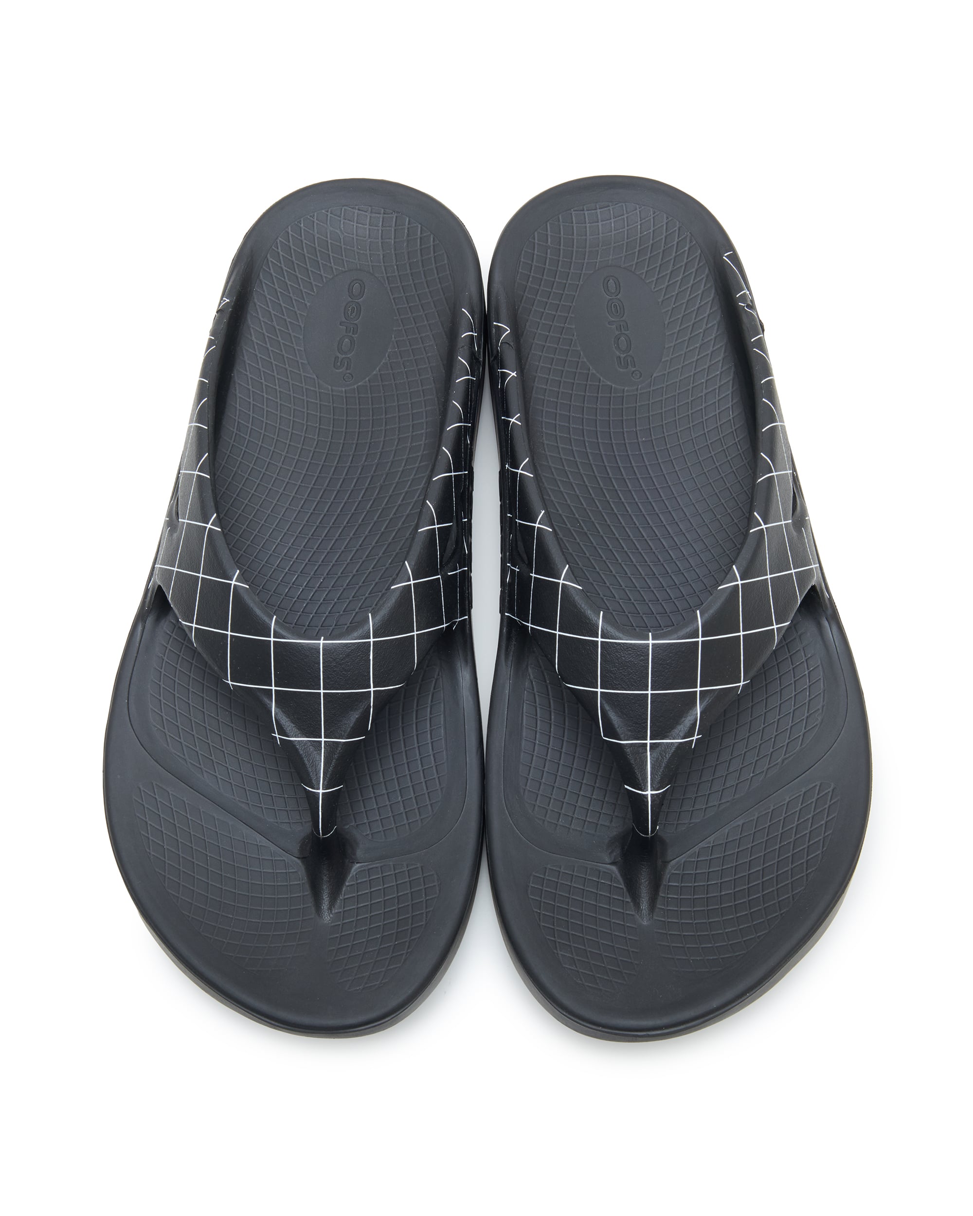 OOFOSのすべてのスタイルとモデルのベースになったアイコニックなトングは、ストラップにスパイダーチェック柄をプラス。シンプルながら洗練されたこのパターンは、コレクションウェアにも採用されています。